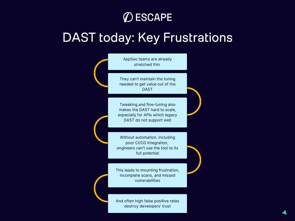 Let me be direct: the frustrations with DAST are real, and they're valid. From my conversations with dozens of AppSec engineers over the past years, the same pain points keep surfacing.
