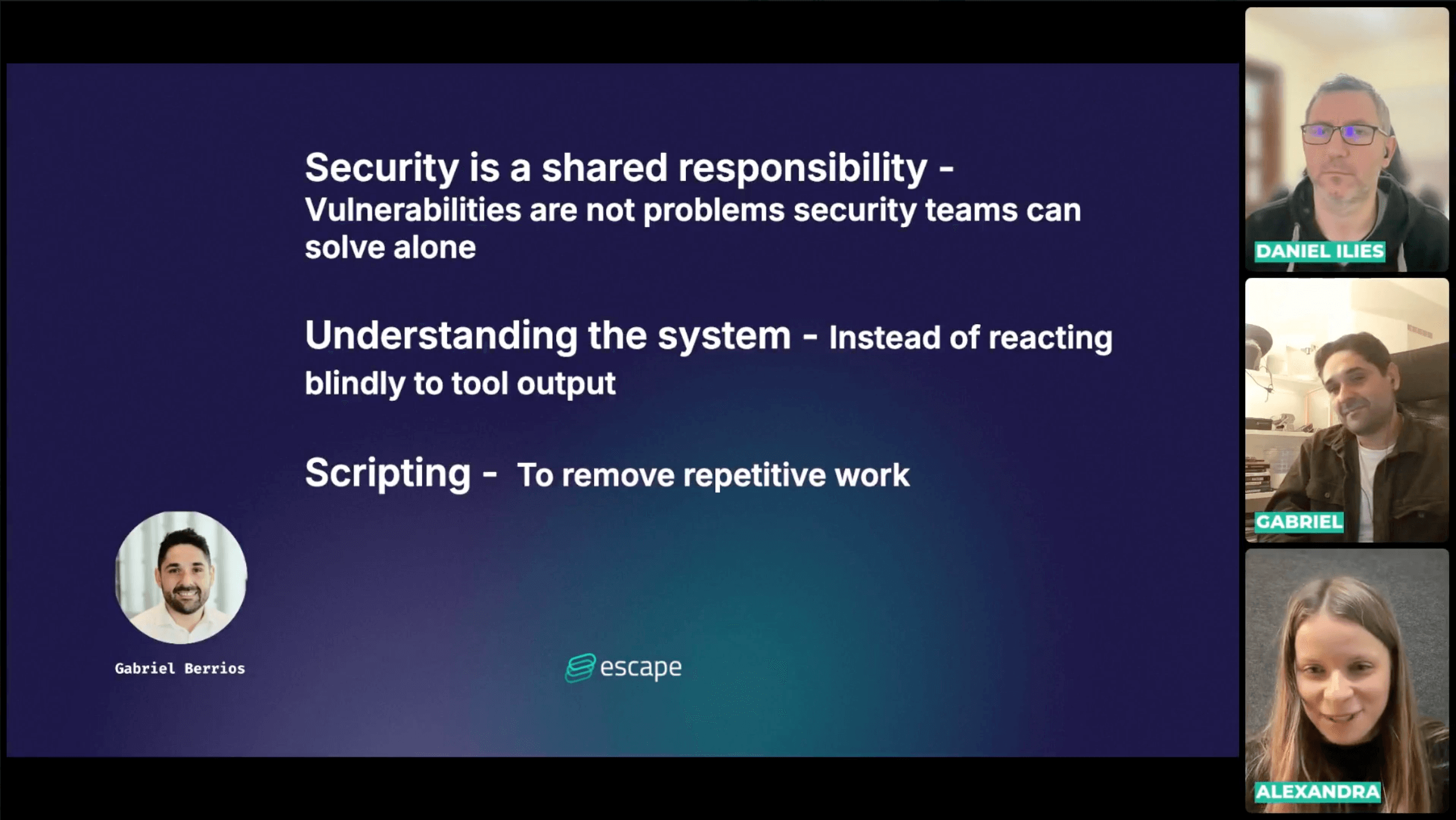 Automation is where Gabriel is investing heavily, particularly around risk-based triage with clearly defined exploitability criteria. The goal is to stop wasting time on informational findings and focus on what's real. "It's better for the teams to have 1 or 2 or 3 really real findings than 100 informational ones," he said.
