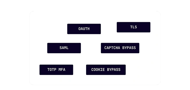 Built in support for authenticated testing: Natively test applications based on OAuth, SAML, password, TLS, TOTP MFA and much more